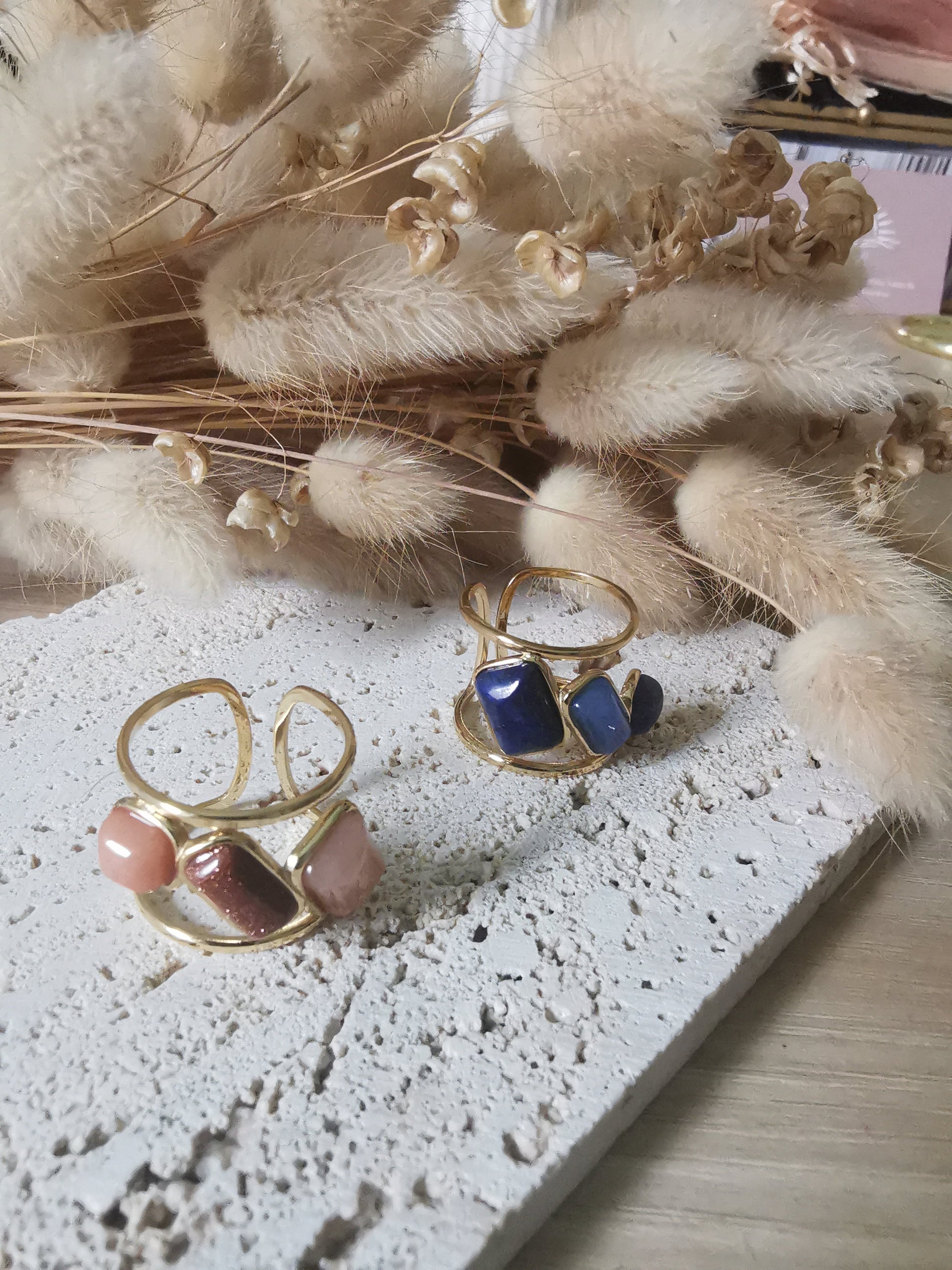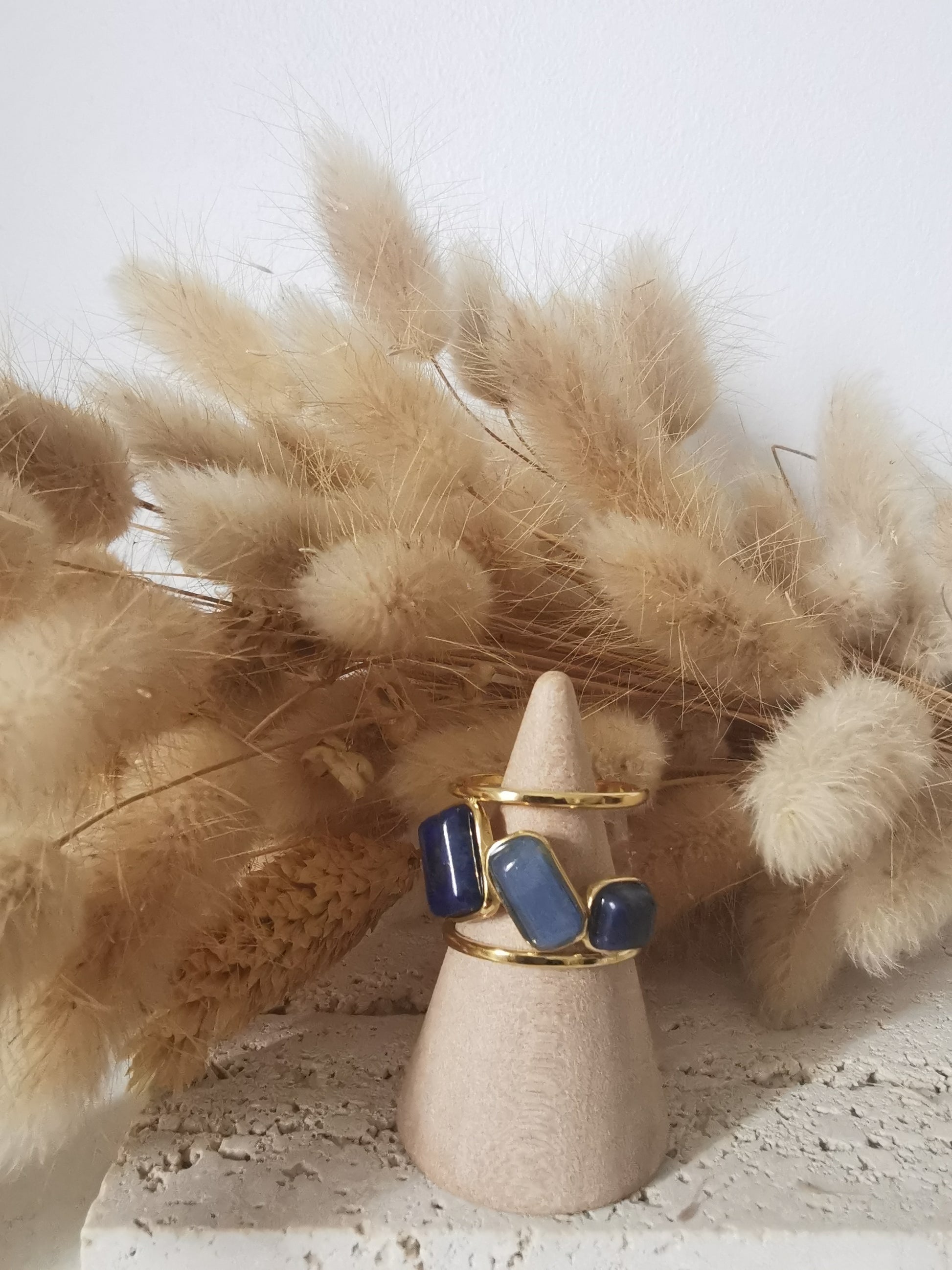 Bague en acier inoxydable composée de pierres naturelles.