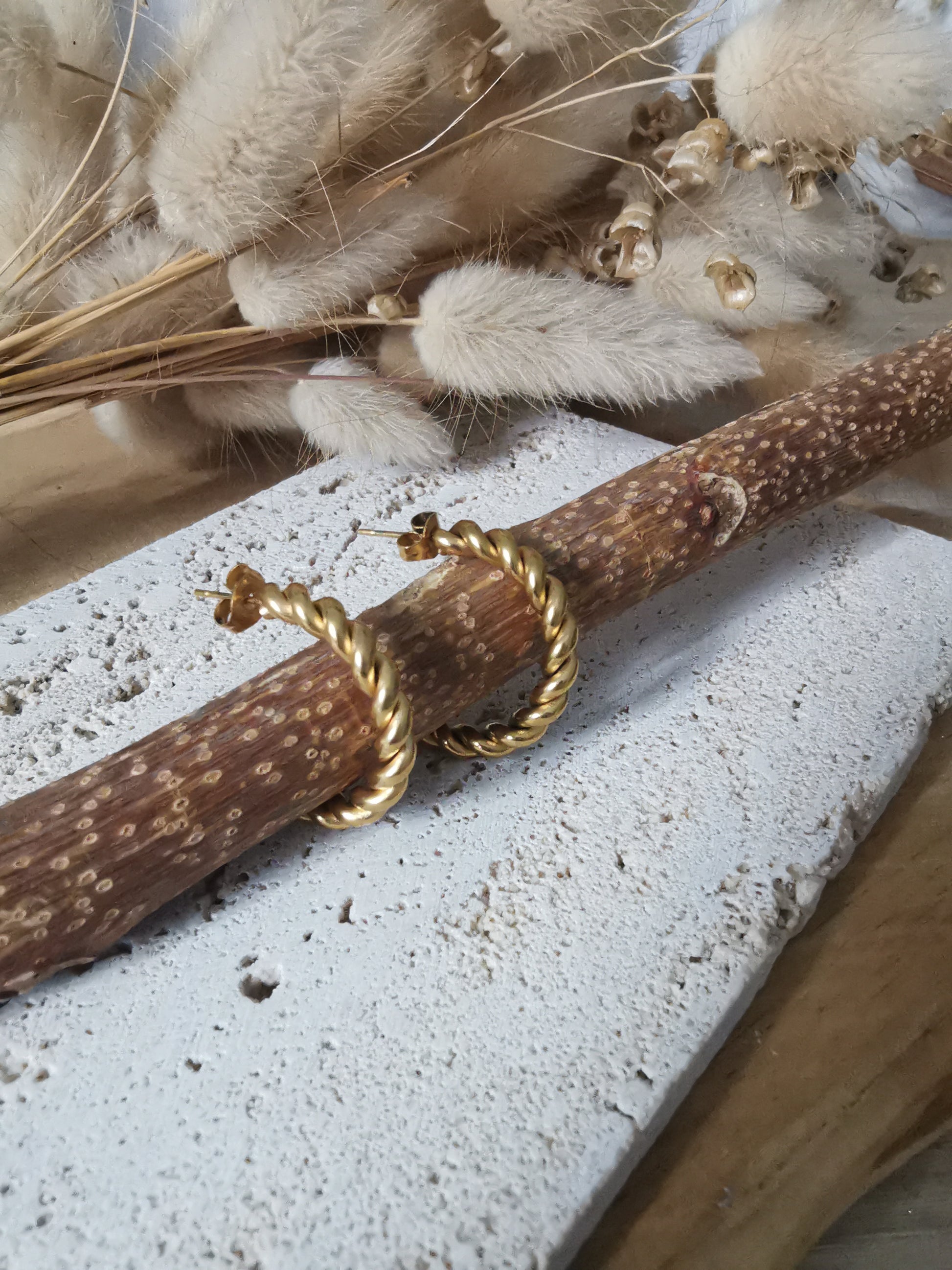 Avec leur design élégant de créoles torsadées, ces boucles d'oreilles apportent une touche de sophistication, elles s'adaptent à tous les goûts et styles. N'attendez plus, ajoutez une touche de glamour à votre look avec les boucles d'oreilles Lana.