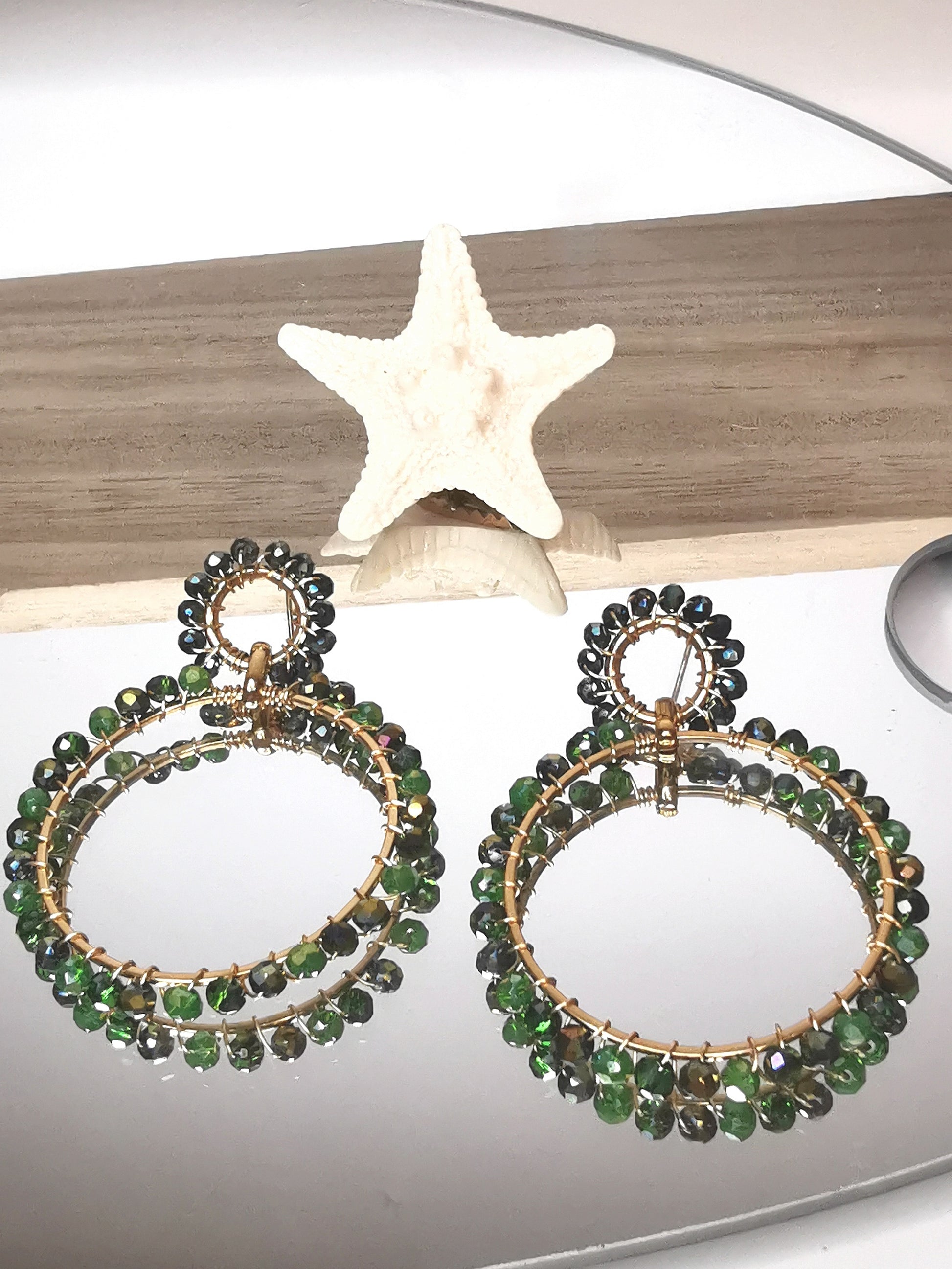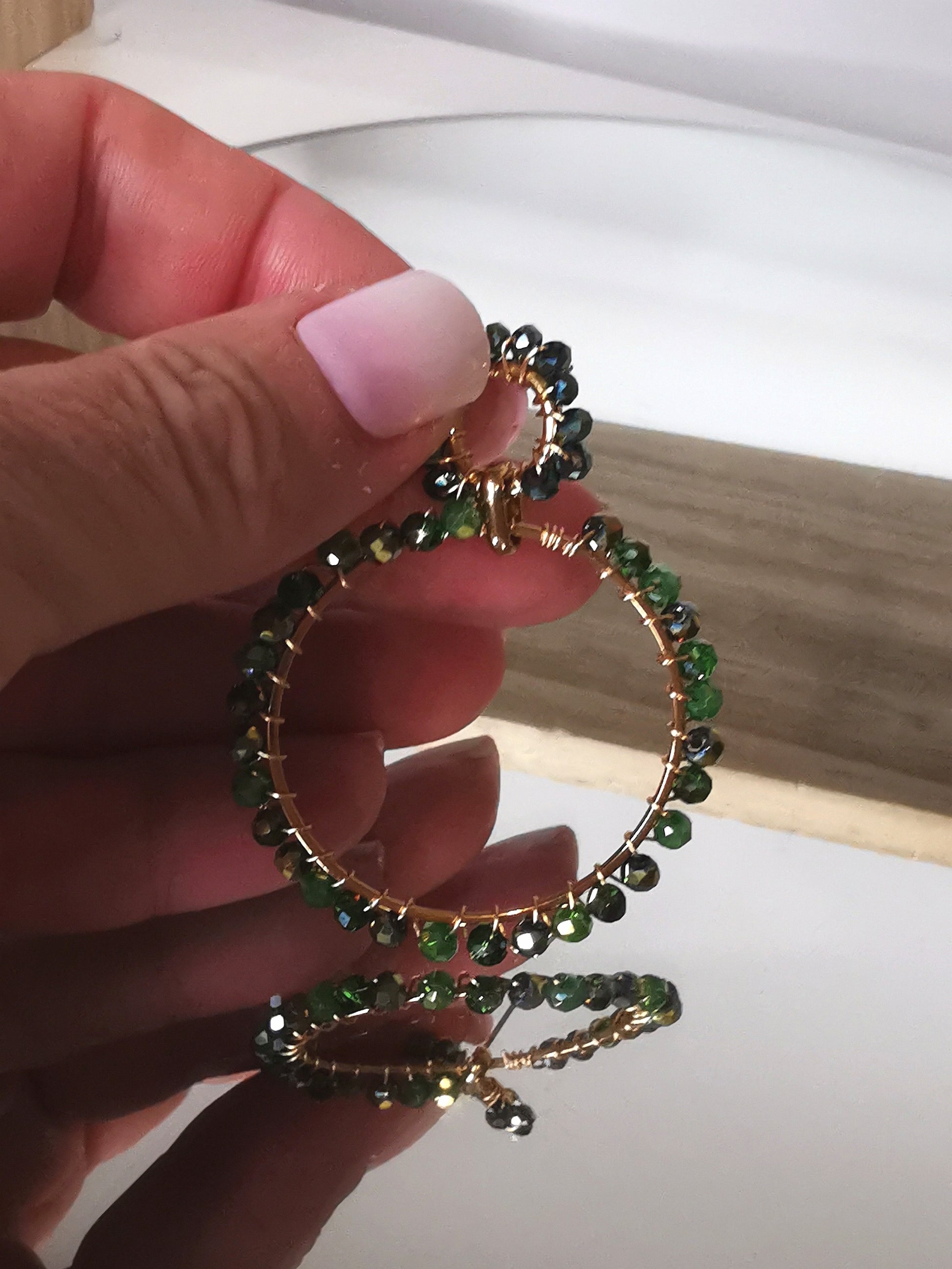 Egayez votre style avec les Boucles d'oreilles style Bohème en Acier inoxydable avec perles en verres facetée vert et Or