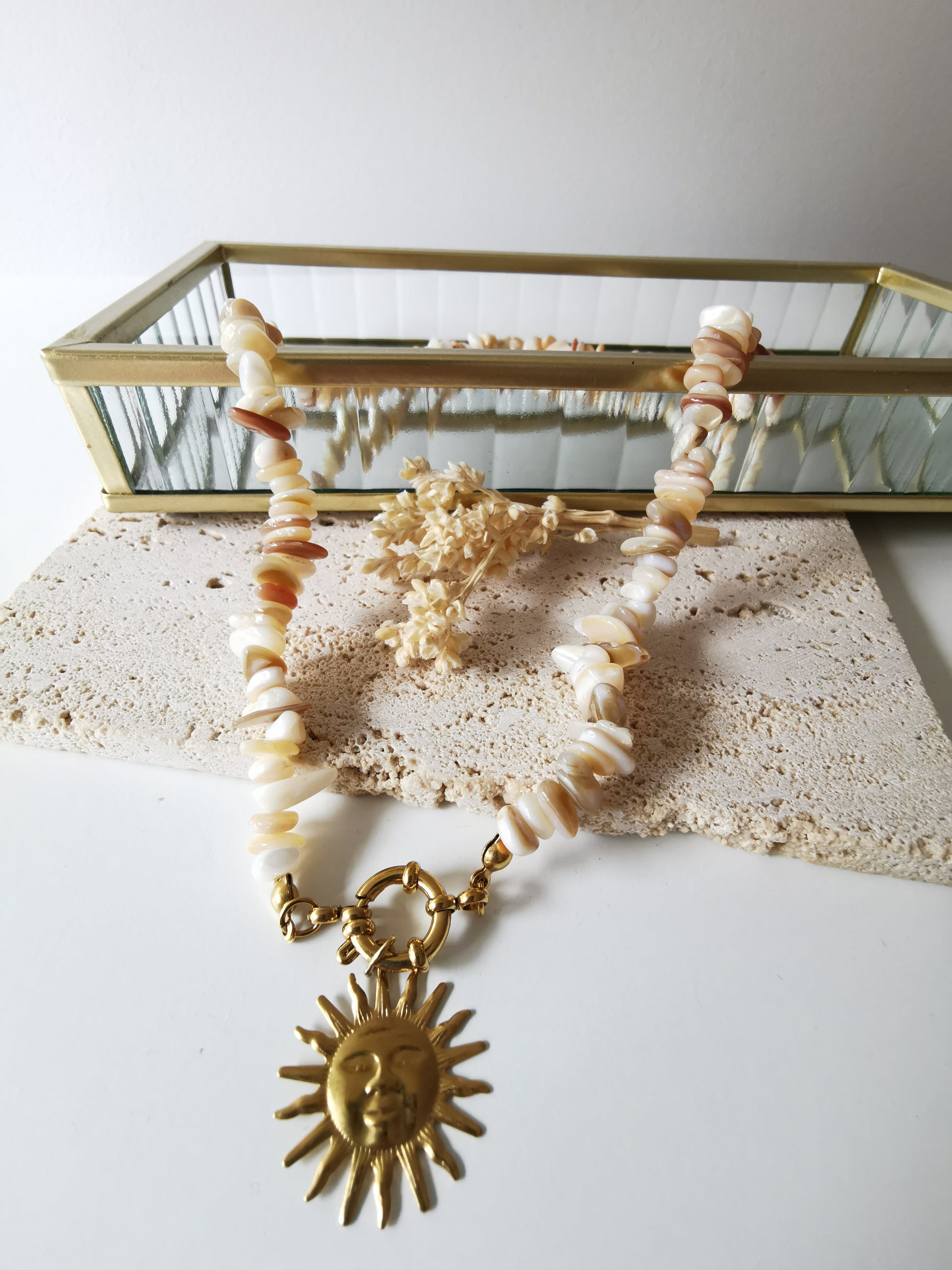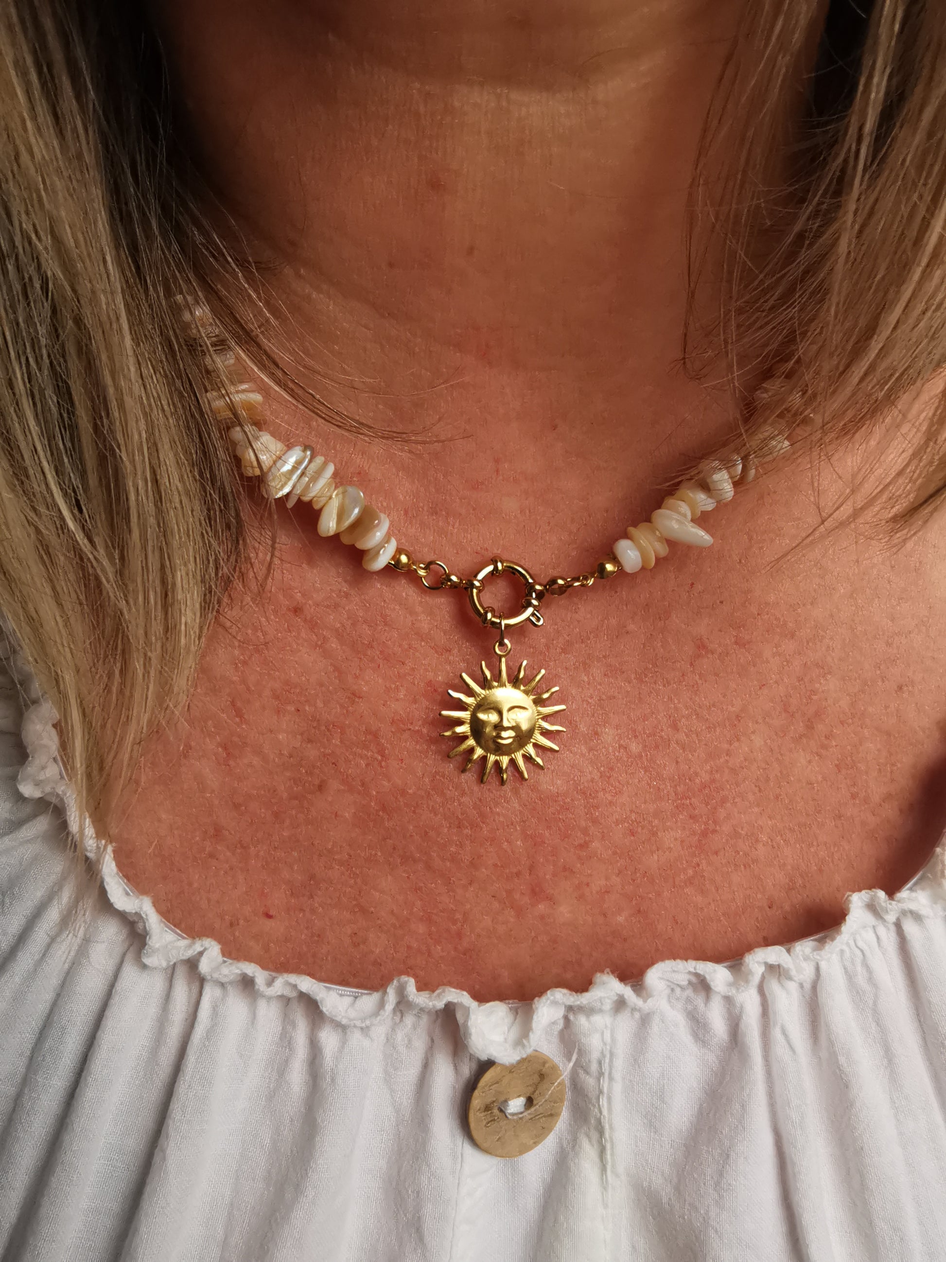 Le Collier en Perles d'heishi est parfait pour vos vacances au bord de la mer ou tout simplement pour apporter un peu de soleil à votre look.