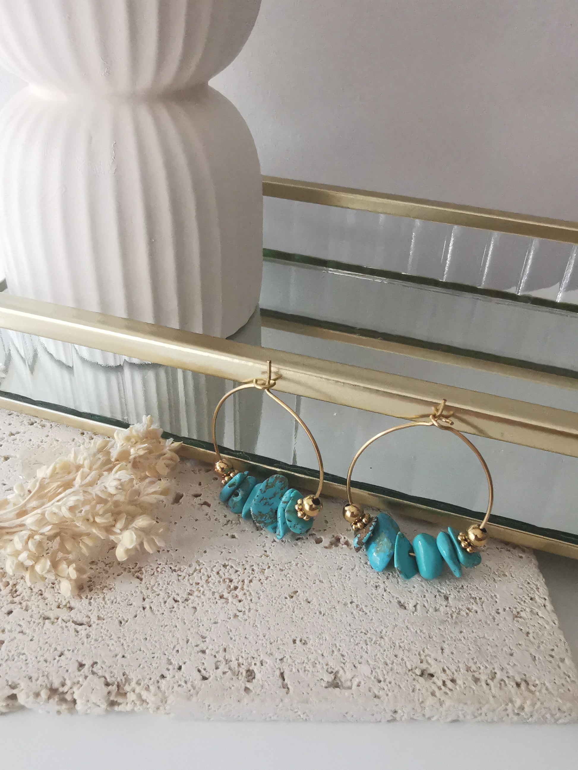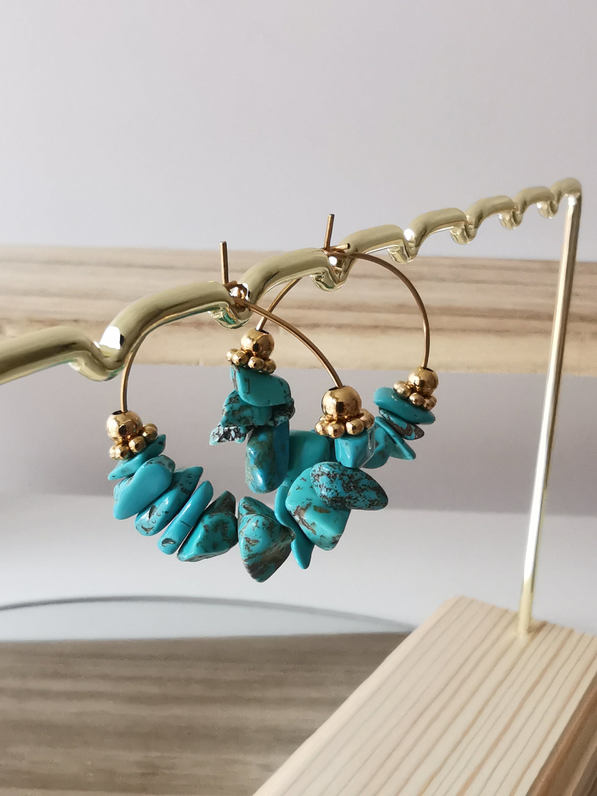 Ornées de pierre chips en pierre naturelle turquoise, parfait pour les tenues estivales.