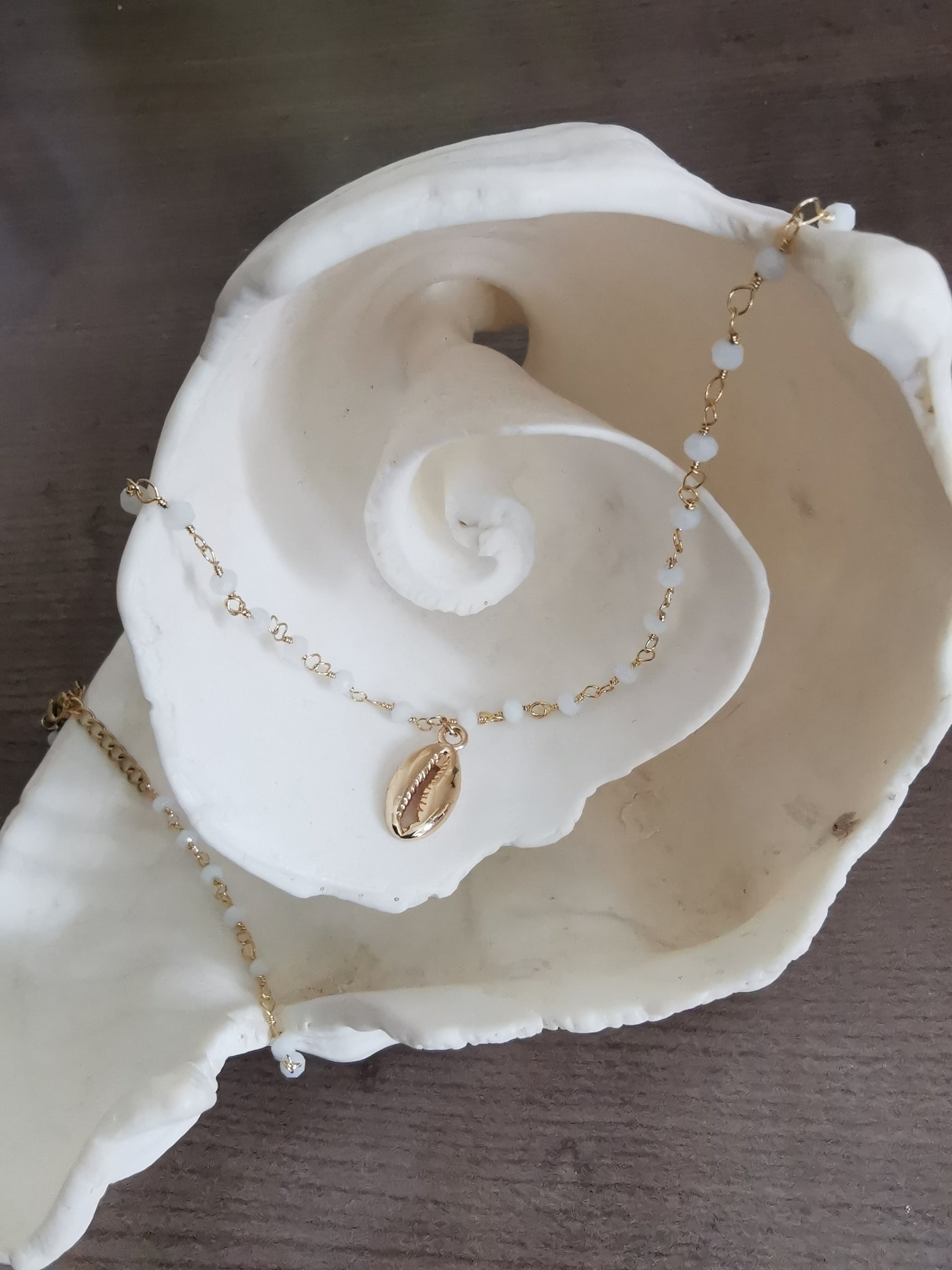 Cette Parure élégante et raffinée est composé de perles d'eau douce et d'un pendentif coquillage pour un look unique et estival.