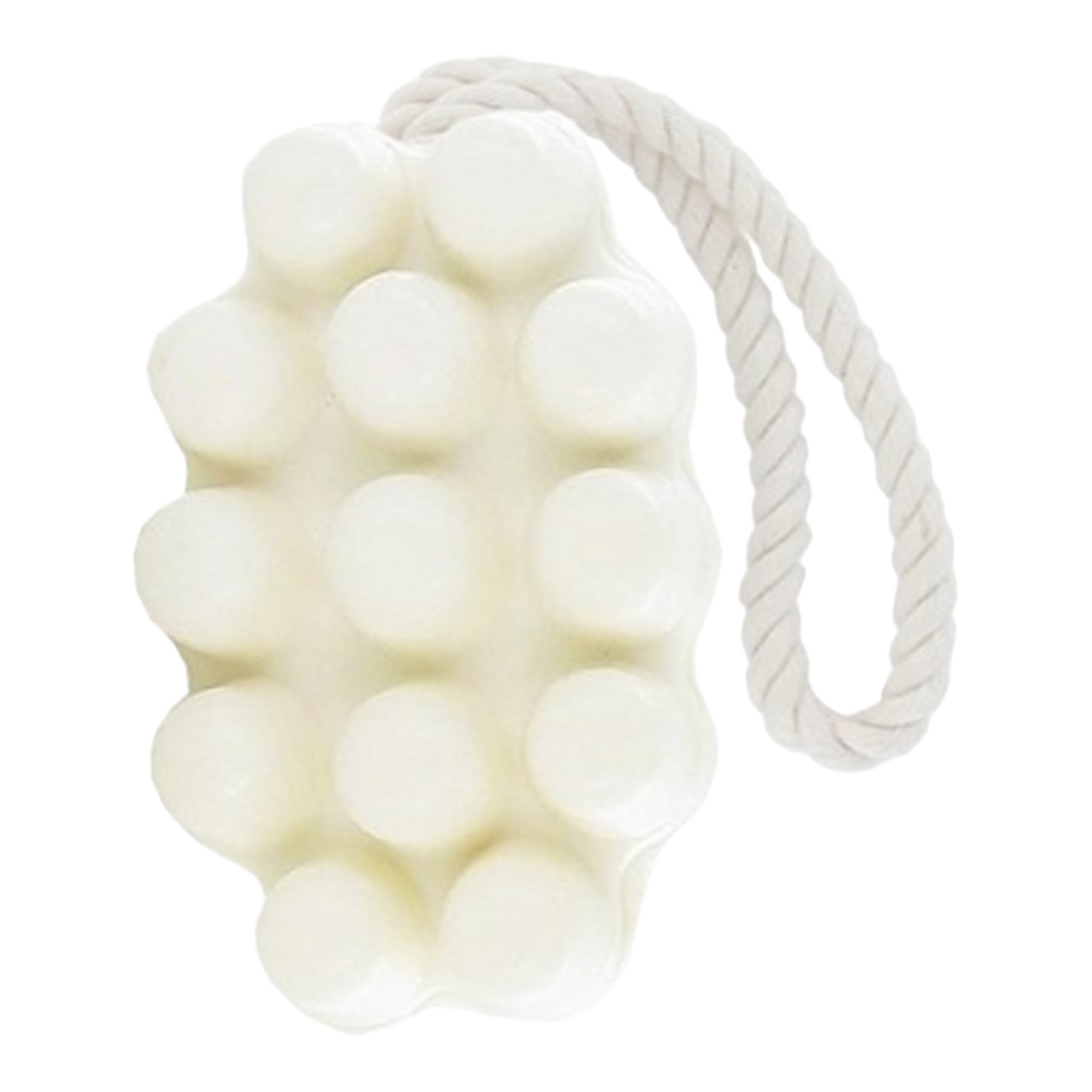 Savon de massage muni d’une corde au lait bio de chèvre pour un massage raffermissant et relaxant.